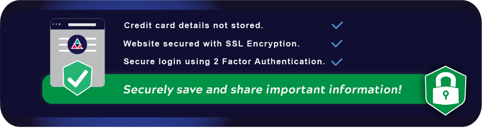 Website access protected using 2 Factor Authentication. Website portal authentication codes sent securely to your mobile phone via SMS.